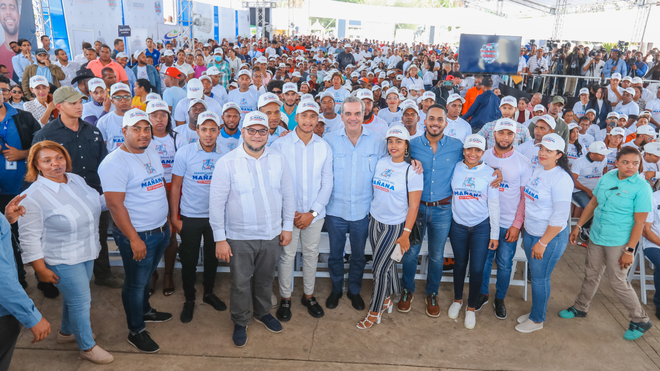SAN JUAN DE LA MAGUANA.- El Presidente Luis Abinader encabezó aquí el acto de inicio del plan «Agropecuarios del Mañana RD Emprende» que busca beneficiar a unas 300,000 personas de entre 18 y 40 años de todo el país.